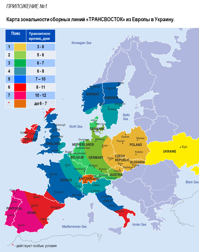 * Стоимость рассчитывается в зависимости от зональной принадлежности пункта забора груза (Приложение №1). Цены действительны в период по 10.07.2016 г. и могут быть изменены в зависимости от конъюнктуры рынка.